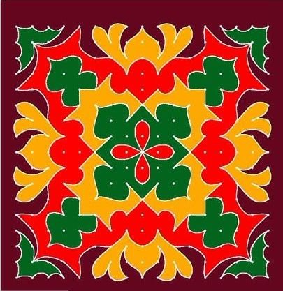 २. देवताओं का आवाहन: धार्मिक मान्यताओं के अनुसार, रंगोली देवी-देवताओं को प्रसन्न करने का एक तरीका है। यह उनके स्वागत के लिए बिछाया गया एक कलात्मक कालीन है।