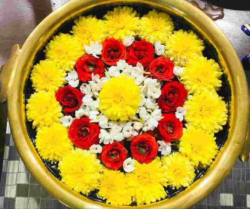 फूलों की फ्लोटिंग रंगोली (Floating Rangoli) Diwali Rangoli Easy Design: